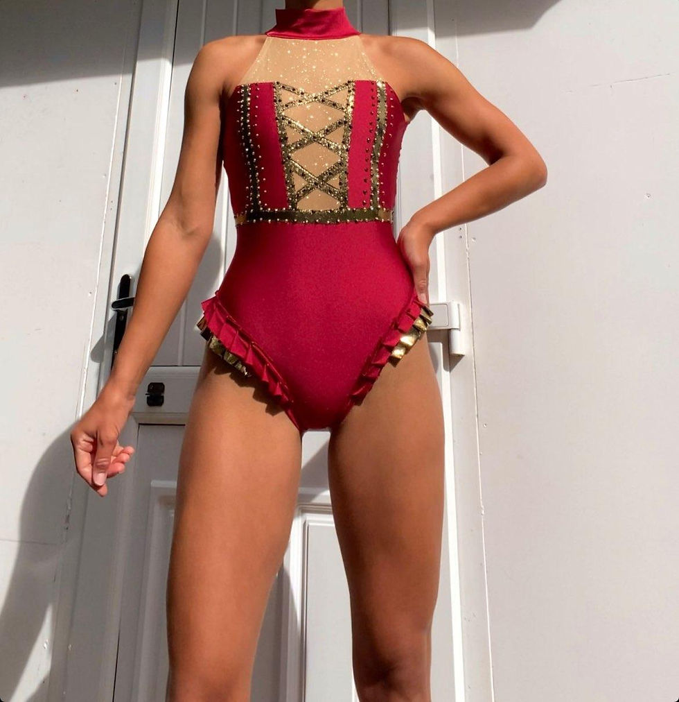 Gymnastics leotard, bodysuit, dress, costume. Show dance. Performance. Events.